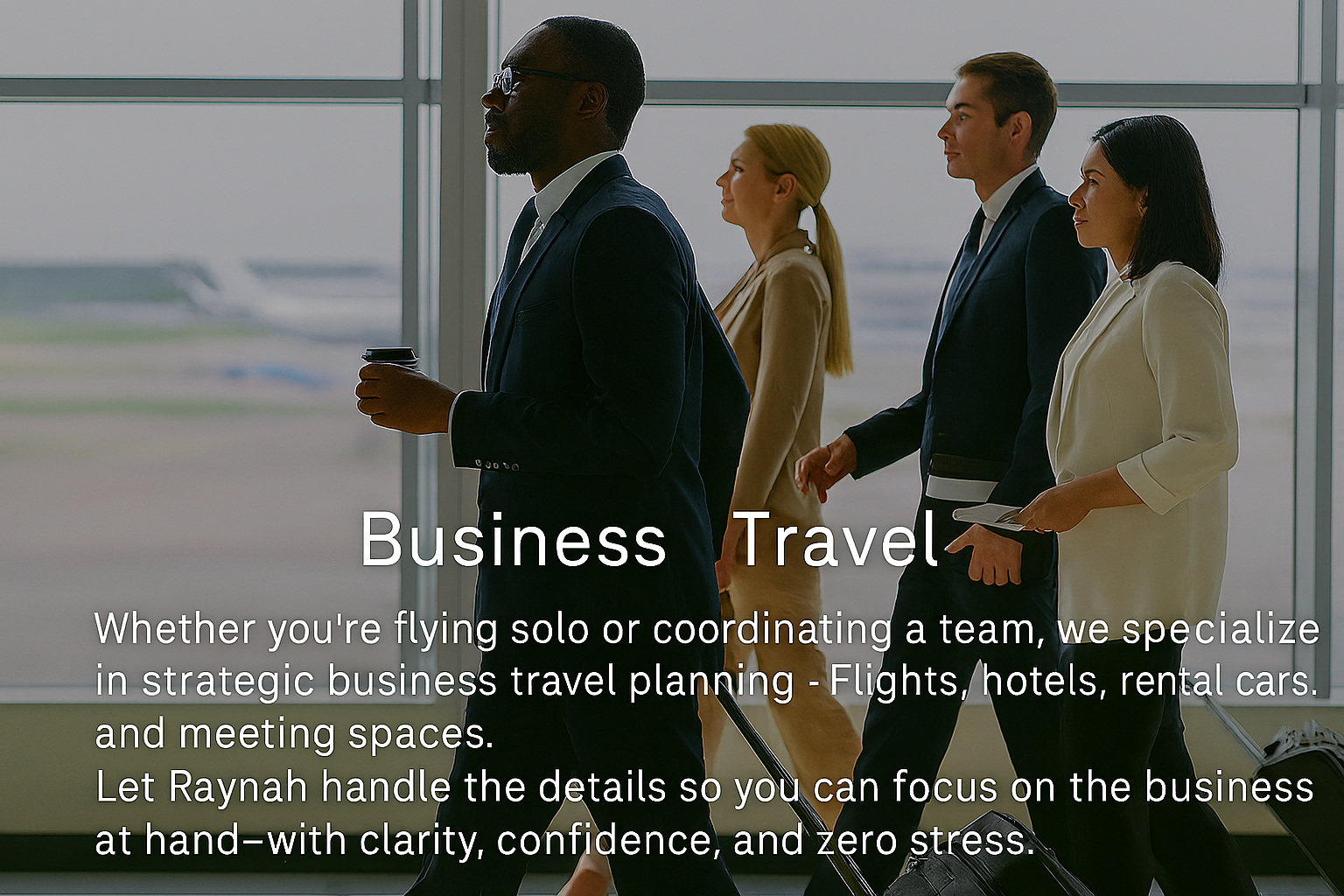 I’m Raynah, your go-to Travel Strategist, here to make every trip seamless, strategic, and stress-free. From business travel to family vacations, team bookings to romantic getaways, I can plan it all, and I love helping others experience trave and events without feeling overwhelmed.